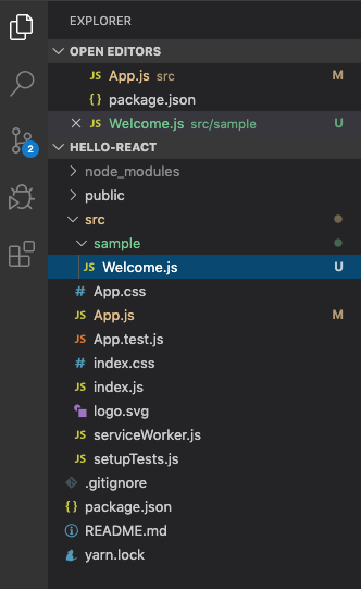 그럼, 아래 그림과 같이 src/sample 하위에 오른쪽을 눌러 새파일 Welcome.js 파일을 하나 만들어 줍니다.